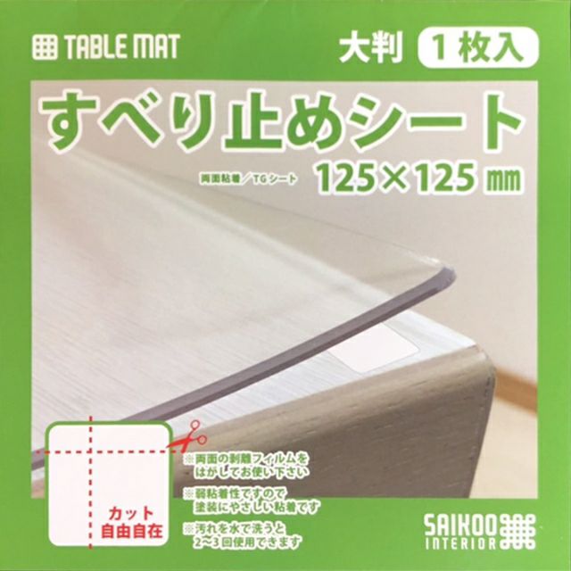 他の画像を見る ビニールマット 滑り止めシール 粘着シール 防滑シール テーブルにやさしい弱粘着タイプ テーブルマット テーブルマット匠のズレ防止に 滑り止め両面シール 透明大判タイプ 12.5×12.5cm 当店特別価格 ¥ 950 税込 カートに入れる お気に入りに登録する