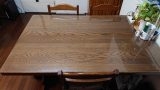 ビニールのシートをひいたと言うよりガラスを置いているような高級感に買って良かったと思いました。日中光が強く入ると反射の仕方がビニールだな、とは思いますが。中にテーブルセンターを敷いて使用しています。テーブルのサイズ-2ミリで作りました。でも手が引っ掛かるとシートが浮くので-3ミリの方が良かったかなとは思います。
