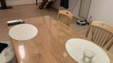 透明感がありテーブル天板にピッタリ密着してフィット感が心地よい但し、テーブルサイズは商品天板裏面に添付されたラベルの記載通りに注文したが、商品のマットを敷いてみると縦横寸法とも約5mm程大きめではみ出る。使用時の支障は特に感じないが気にはなる。こんなものなのでしょうか。