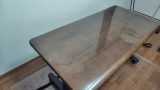 無印良品さんのリビングでもダイニングでもつかえるシリーズのテーブル用で製作させていただきましたが、リビングでのお子様の学習時間やお仕事の際にも快適にお使いいただけているようで何よりでございます。優しいお色のテーブルに、自然を感じさせる天板の木目が美しい素敵なテーブルですね。テーブルマット匠は書き物をしても引っかかることがなく、両面にポリウレタンUVコーティングをしておりますのでプリントの転写や裏写りを防止いたします。今回面取り加工もしておりますので腕を置いた際のあたりも良くなり、お子様がリビングでお勉強する際やお仕事をさせる際、快適にお使いいただけましたら嬉しく思います。