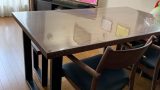 今回は厚さ2mmで製作しましたが、テーブルマット匠は透明度が高いので天板の美しさを損なうことがありません。むしろ今回の画像のようにさらに高級感が増しているかと思います。テーブルマット匠はサイズも角丸もミリ単位でオーダーできるのでどのようなテーブルでもぴったりに製作できます。裏面にはシボ加工(細かい凹凸)施しているので他のビニールマットのようにテーブルにベタっと張り付いて嫌な気泡ができるとういうことがありません。マットを外す際にも塗装が張り付いてしまうことがありません。両面にポリウレタンUVコーティングを施しておりますので日焼け、キズや汚れにも強くインクの転写もいたしません。ベタつかず、ペンの走りも良く、マウスが動かしやすいさらりとした手触りも好評です。除光液、薬品、クリーナー(研磨剤入りは使用しないでください)にも強いのでお手入れもしやすい商品になっております。いつまでもそのままの状態でお使いいただけるかと存じます。