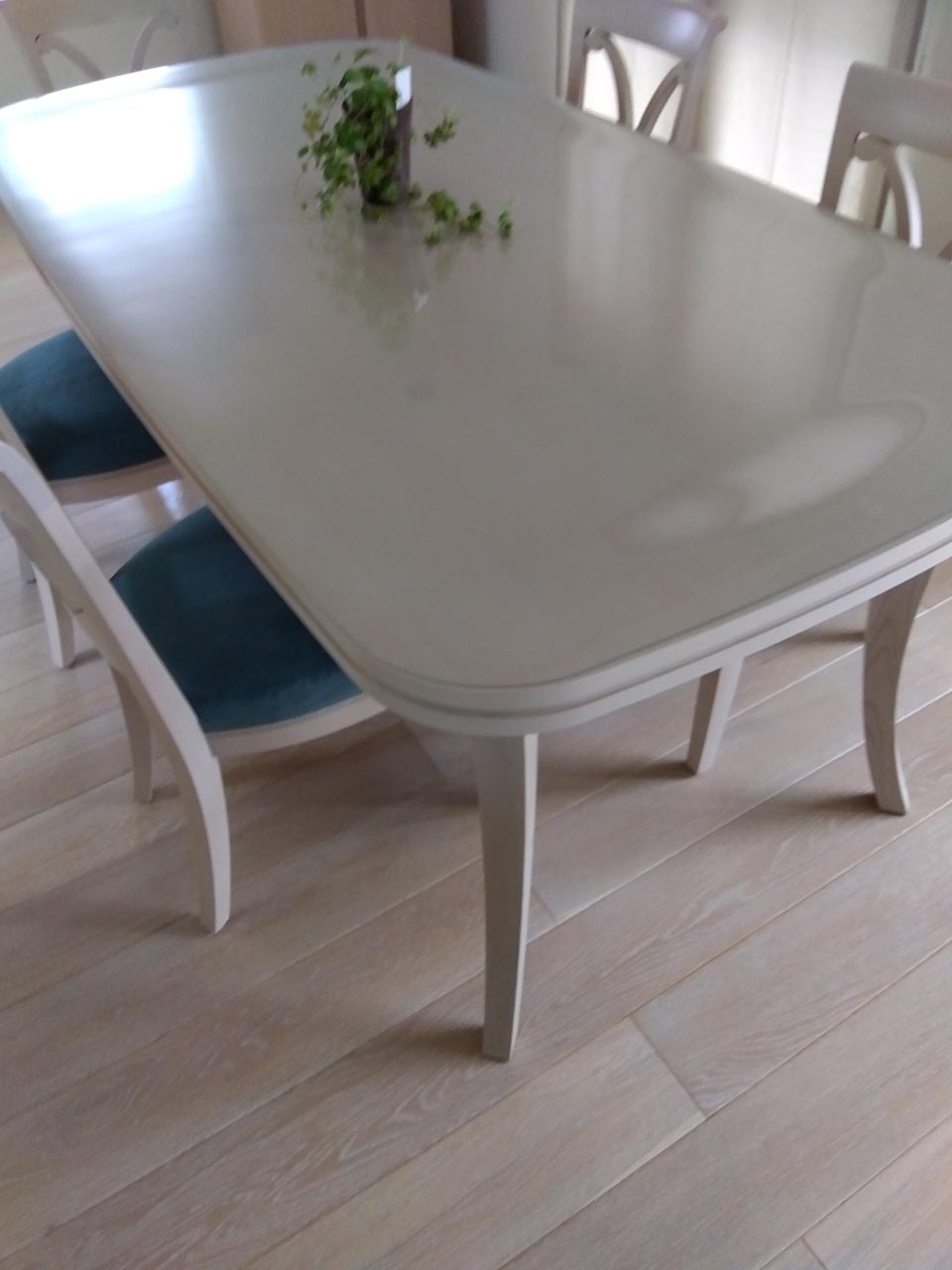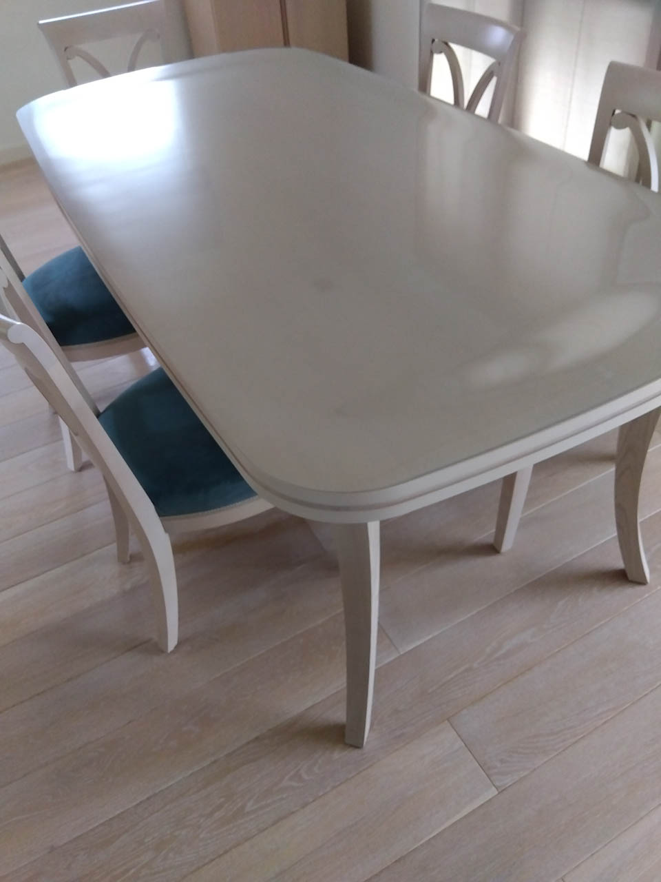 6人がけのオーダーメイドのリビングテーブル。しかも角が丸くカット。サイズ120✕200