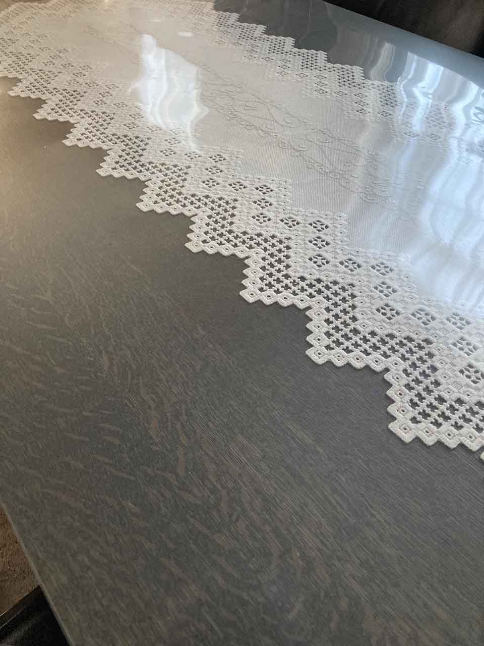 テーブルマットの下に敷いている刺繍の色がはっきり写り透明感が抜群です。