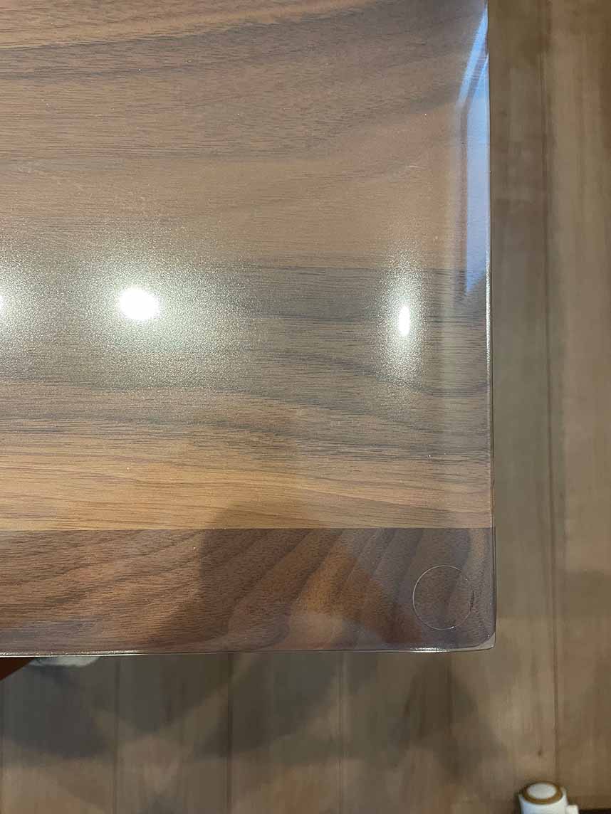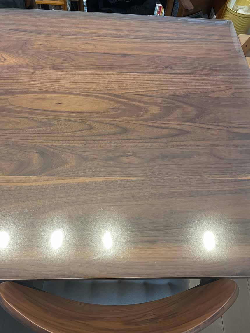 カリモクのダイニングテーブルの高級感を損なうことなく、しっかりとテーブルを守ってくれている。1Rでお願いしたものをテーブルにセッティングすると、角度見誤ったかなと一瞬思いましたが、全然問題ありませんでした。高級家具もマットが守ってくれているので安心して使用できます。
