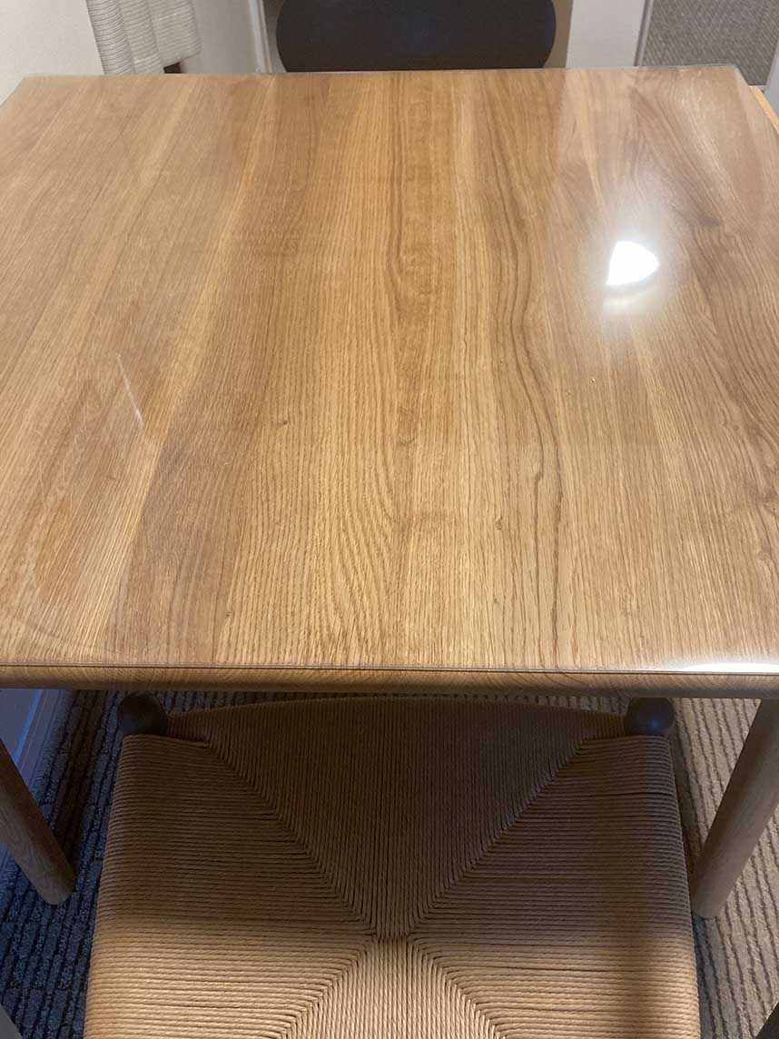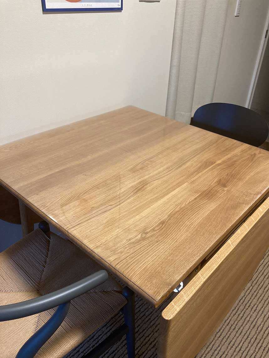 甲斐がありました、ピッタリでした。厚みも程よく、安っぽさもありません。天然木オイル仕上げのテーブルなので水分厳禁、これから安心して使用できます。ありがとうございます。