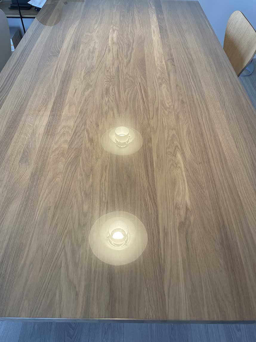 若干サイズがはみ出ているのが、テーブル自体の問題なのかはわかりません。どのくらい買い替えまでもつのかわかりませんが、5年くらいもつと嬉しいです。これからはテーブルを汚すのを気にしないで食事ができるようになりほっとしました。