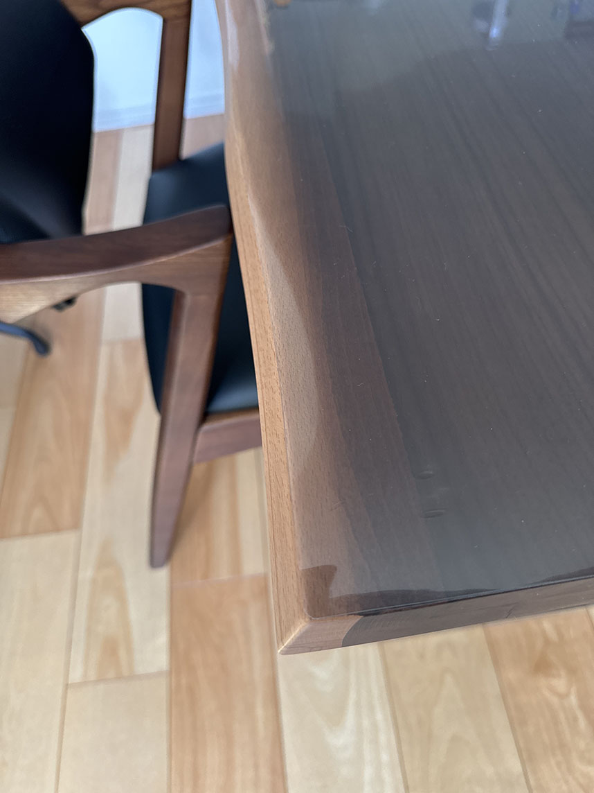 波型のダイニングテーブルでネット検索したところ、細かく型取りが出来るのは御社だけでした。素人が台紙で型取りしましたが、ほぼ完璧なサイズ感でビックリしています。型取りも簡単で分かりやすく解説があったので信頼できる家具屋さんだと思いました。