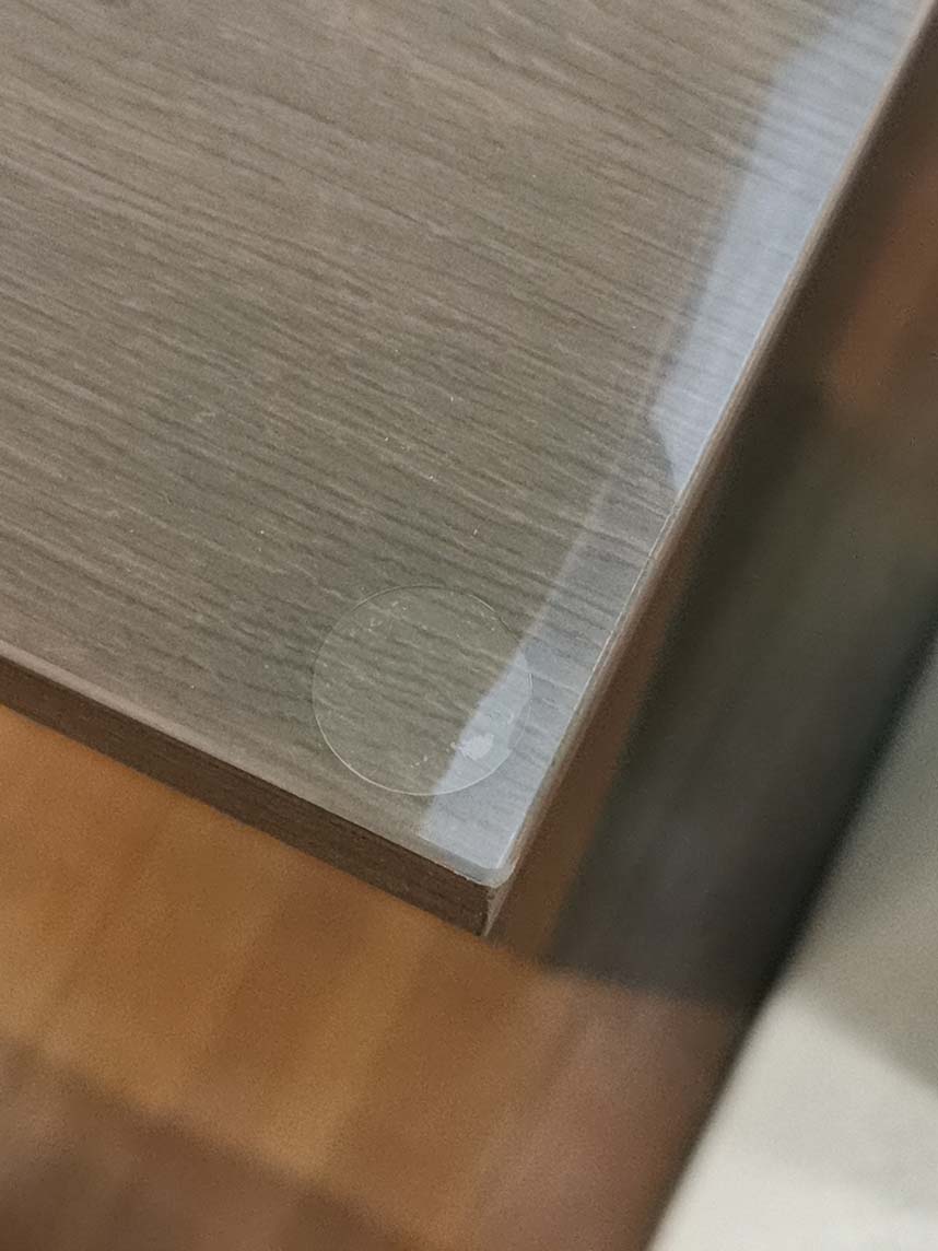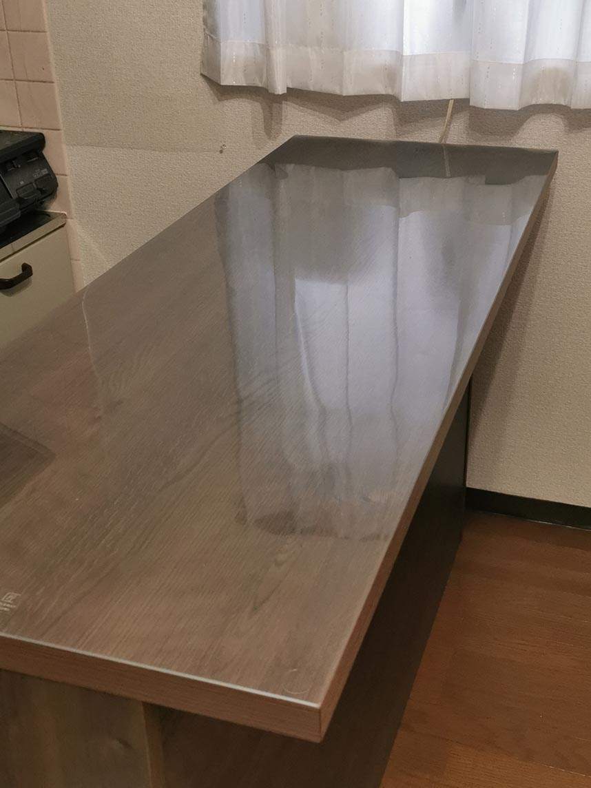購入したテーブルがかなり油染みしそうなものだったので、こちらでテーブルマットを購入しました。サイズ指定が細かくできるお陰で、敷いた際もジャストサイズでした。開封直後は反りの影響もあり、ズレやすい状態でしたが、1日経った時点で軽く表面を拭いてもズレない程度には安定するようになりました。長期的な使用感はまだ分かりませんが、第一印象としてはかなり満足しています。