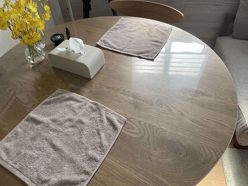 表面がコーティングされていないテーブルだったので、マットのおかげで汚れなどを気にせず使用できるようになりました。