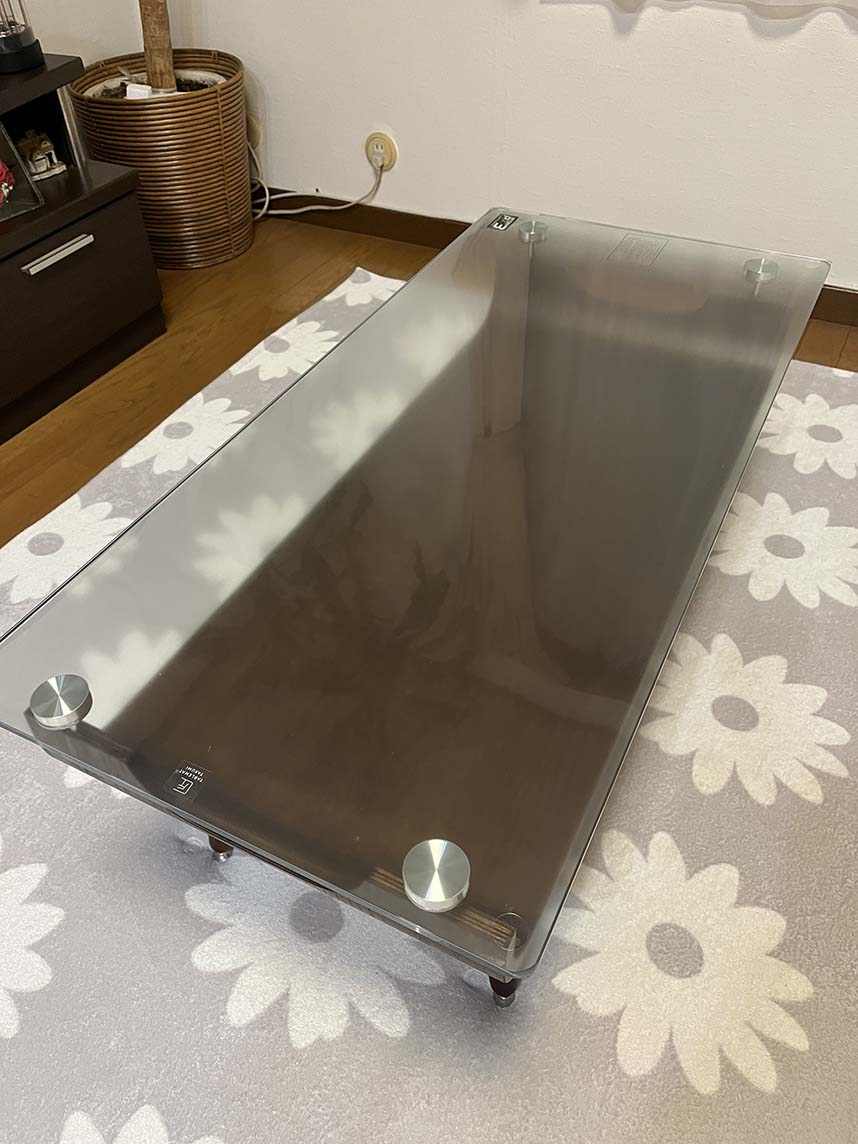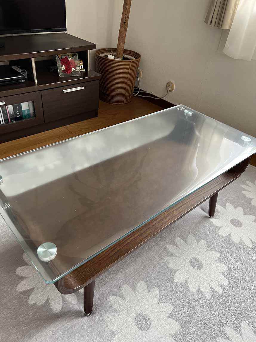 ガラステーブルなので、音も解消されました。