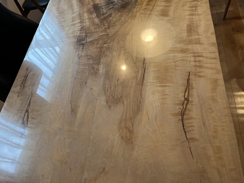 ダイニングテーブルに使用、栃の木の一枚板(ブックマッチ)テーブルです。