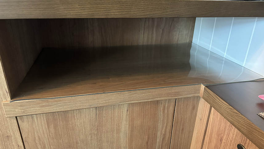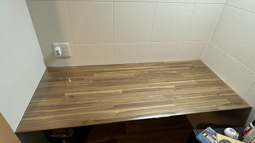 もとが小さい机なのではみ出しがひどく目立ちます。しかもR15なのでこちらで加工もできません。