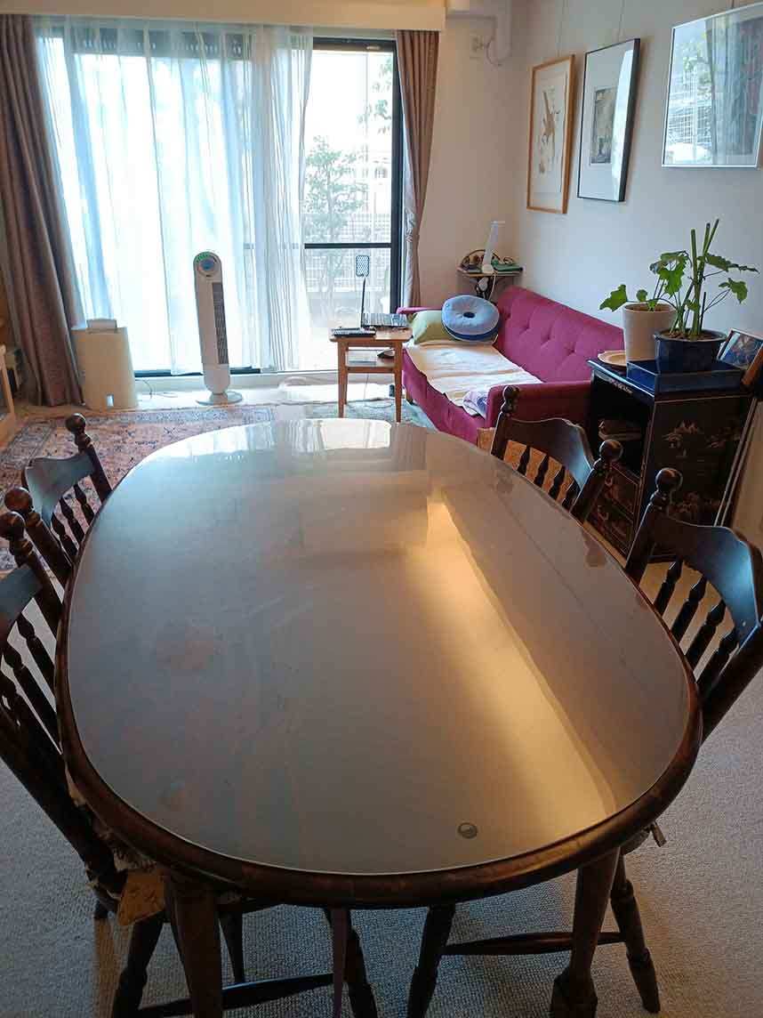 約40年前に購入した北海道民芸家具の楕円形テーブルと椅子