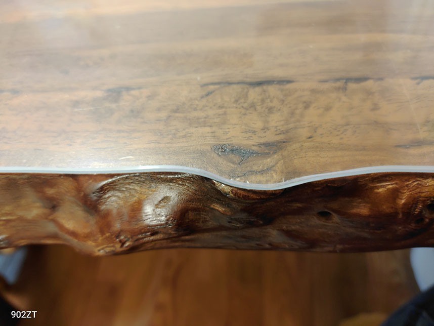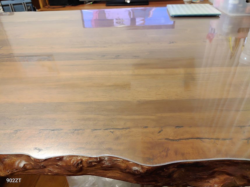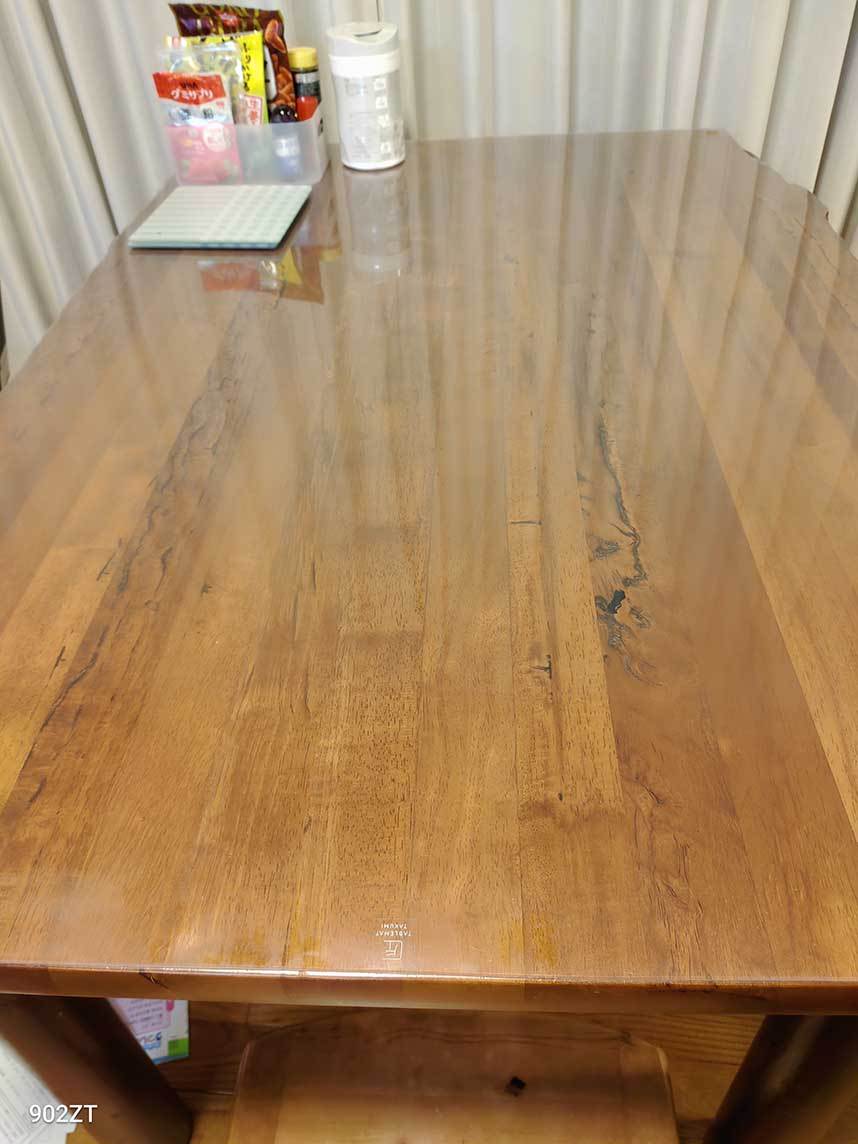 小さな子どもが、離乳食の時にフォークで突いたりして、テーブルが傷ついていたので、気になりマットを購入しました。特殊な形のテーブルなので、対応してくれていてこちらで頼むしかないと思いました。なかなかのお値段ですが、断面は滑らかに面取りされ、曲線がキレイで、当たっても痛いと感じません。