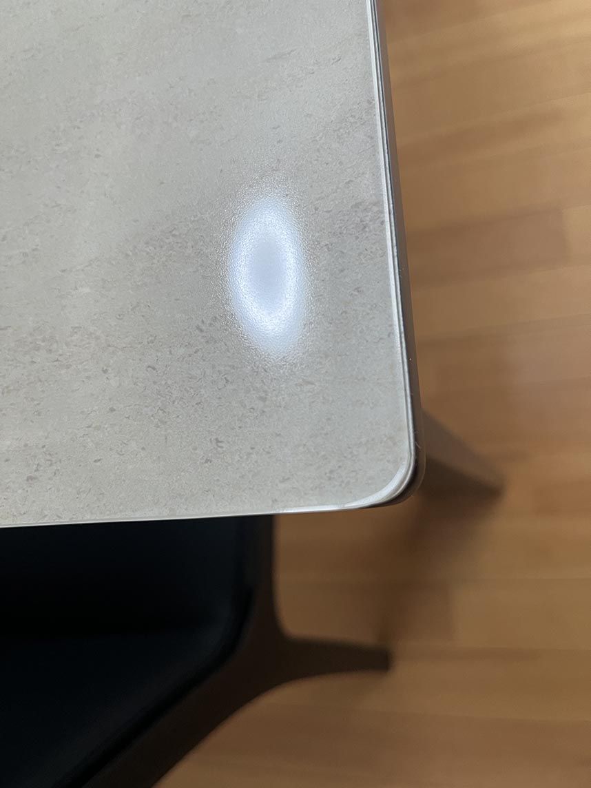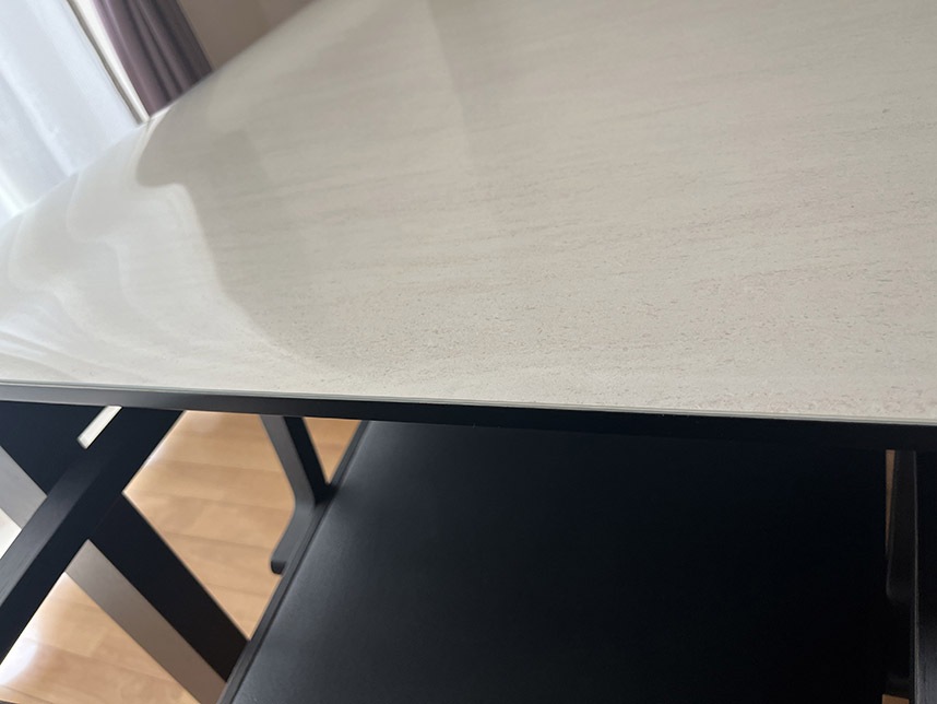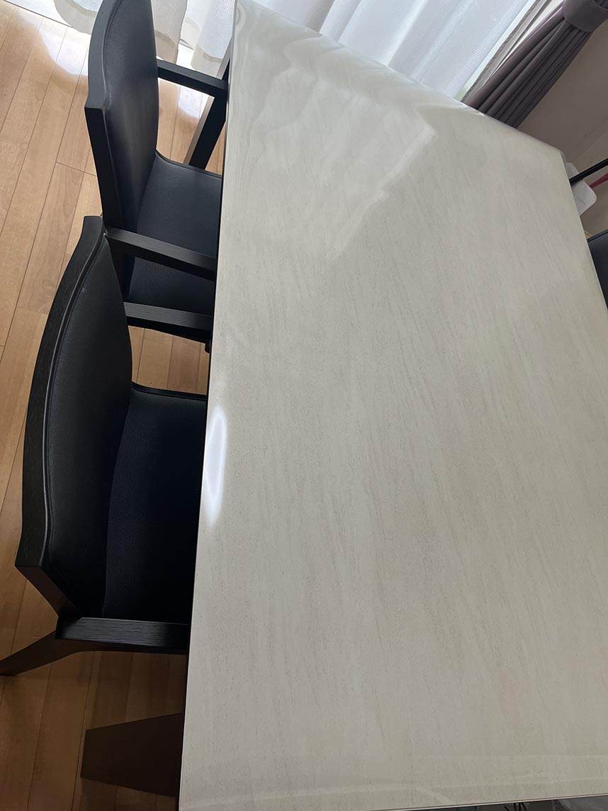 使用しているテーブル自体がメラミン天板のため元々キズなどには強いのですが、テーブルマットを使用することでより安心感が増しています。