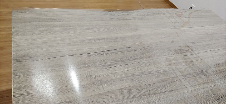 サイドが波打っているデザインのテーブルですが、早く購入したかったので特に細かい型の指定はせず注文させていただきました。そのためマットがはみ出てしまう箇所もありますが、今のところあまり気になっていません。