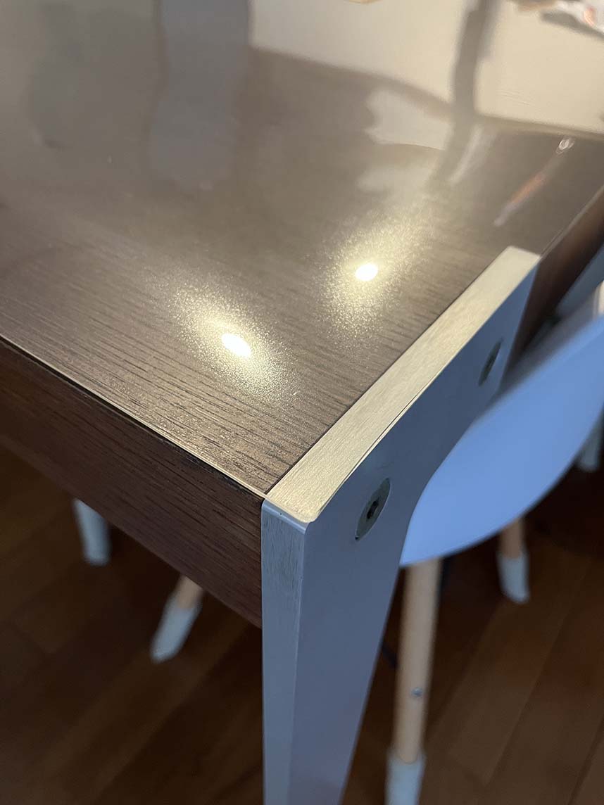 ダイニングテーブルのマットが古くなったので買い替えを検討。気泡が入らないものを探していて、更にサイズのオーダーが可能だったので購入に至りました。厚みもありしっかりした商品で、長く使えそうです。とても気に入っています。