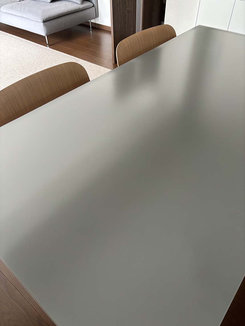 子供の勉強跡がつかないように勉強時のみひこうと注文しましたが、普通のビニールマットと違いあまりひいていることに違和感がないので常にひいています。インテリアの邪魔にならないのでとてもよいです。