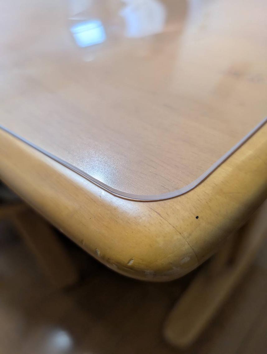 ダイニングテーブルは四角が丸くなっているに加え、四辺も緩くカーブしているため、市販品だとうまく合わずにいました。