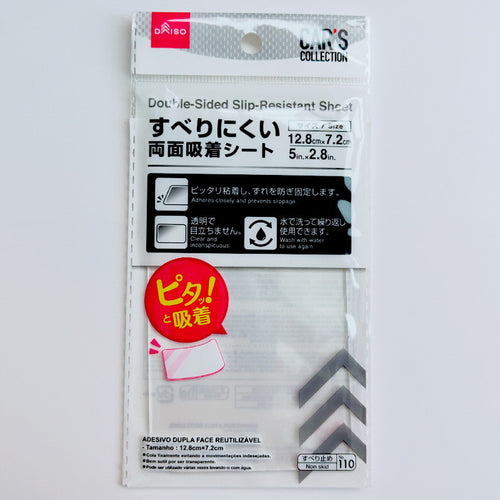 両面に粘着加工が施された滑り止めシートです。家具や生活用品などにぴったりと吸着し、テーブルクロスのズレや滑りを防止します。汚れが付いて吸着力が弱まっても、水洗いをして繰り返し使用できる点が同商品の大きな特長です。サイズは12.8cm×7.2cmで、透明な両面吸着シート1個入りとなっています。