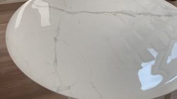 満足!約30年前に購入した、天然木のダイニングテーブル。数年前に天板を補修しましたが、今回、その保護用として購入。設置してみると、透明感があり、表面の質感、厚み、エッジの処理なども良く、予想以上に違和感なしで満足しています。完成品の出来栄えは、ほぼ問題なしでしたが、型紙を当てて型を取る作業が難しいですね。どこをなぞるのが正解か分からないためか、R部分に若干スムーズでない部分があり…