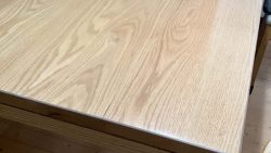 大満足!!無垢のダイニングテーブル 2㎜か3㎜で迷いましたが、子供たちがめくったり引っ張ったりしにくいように3㎜にしました。とても丈夫な上、サイズもぴったりでいいです。透明感もあり、綺麗な木目もきちんと見えるので良かったです。